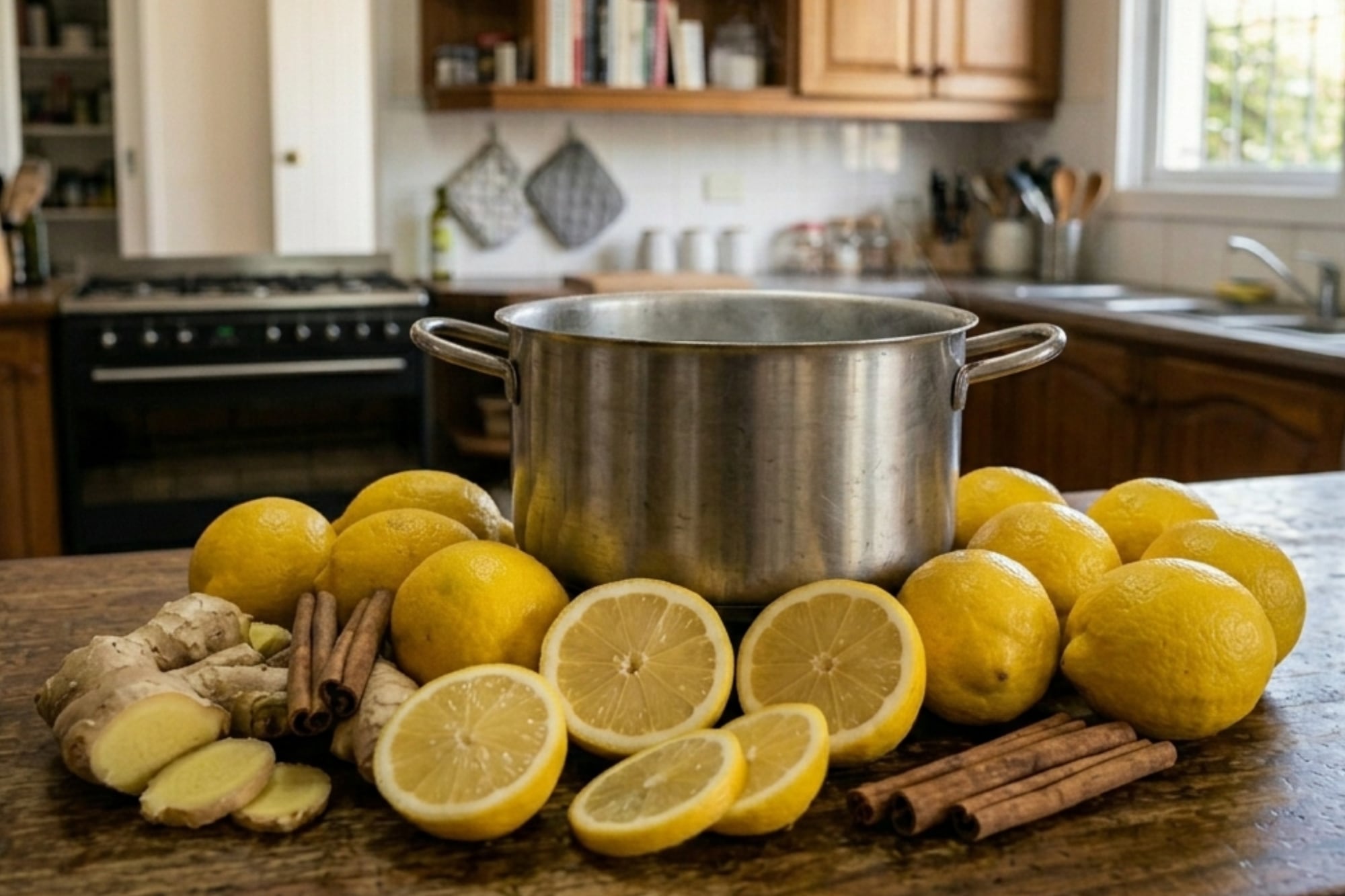 Según se informa, para aromatizar ambientes se deben hervir en agua cáscaras de limón, rodajas de jengibre y, opcionalmente, canela. El vapor liberado perfuma el espacio. Se recomienda supervisar el proceso, reponer el agua y ventilar luego, especialmente si hay personas con afecciones respiratorias.